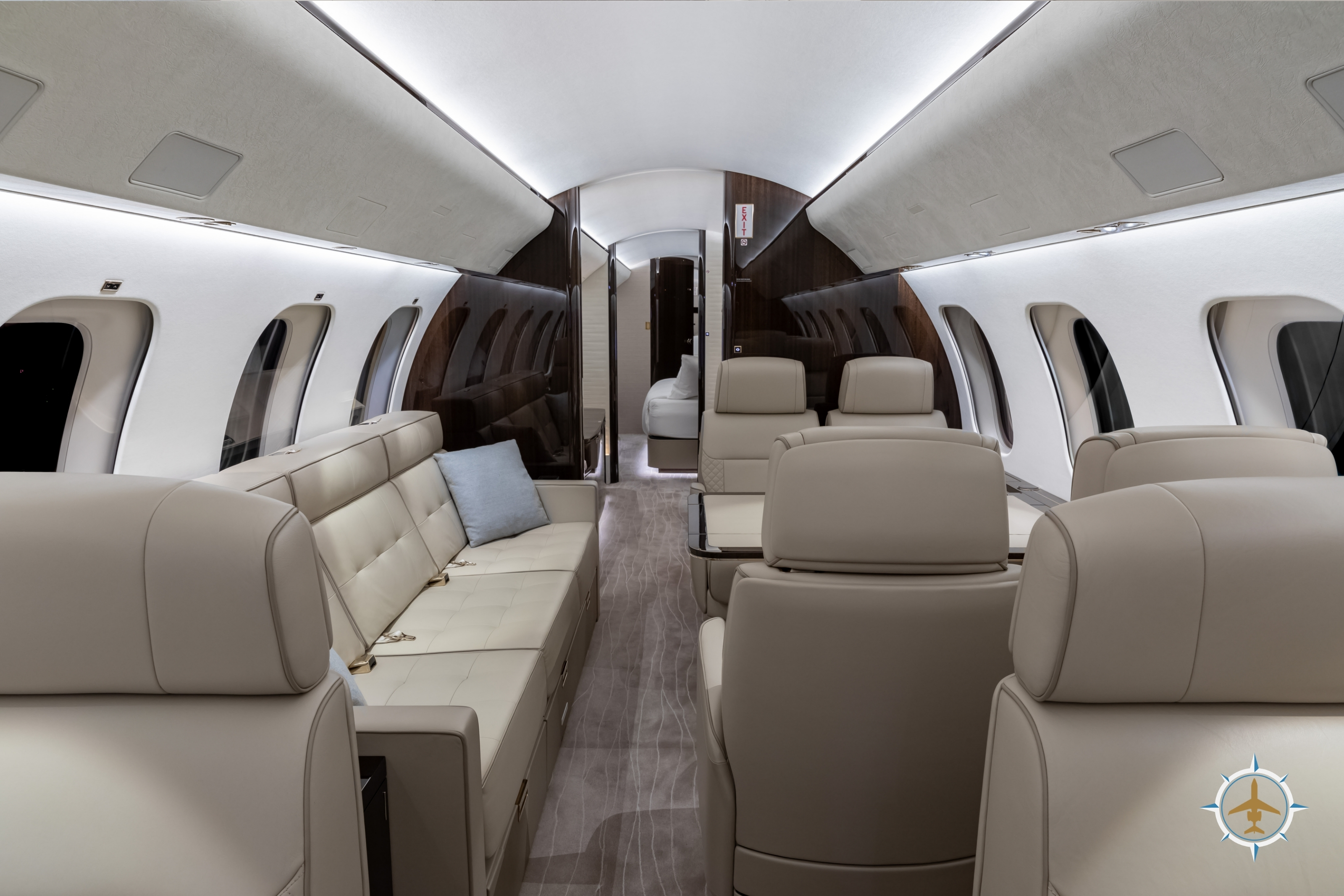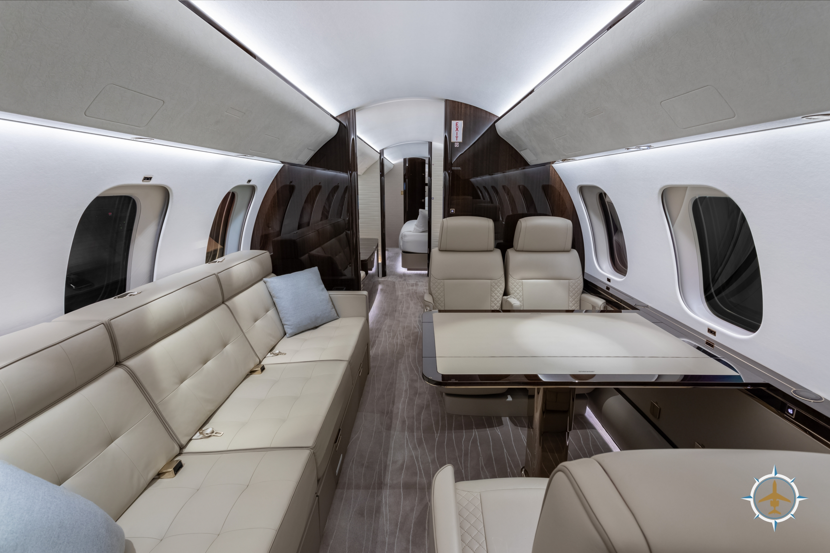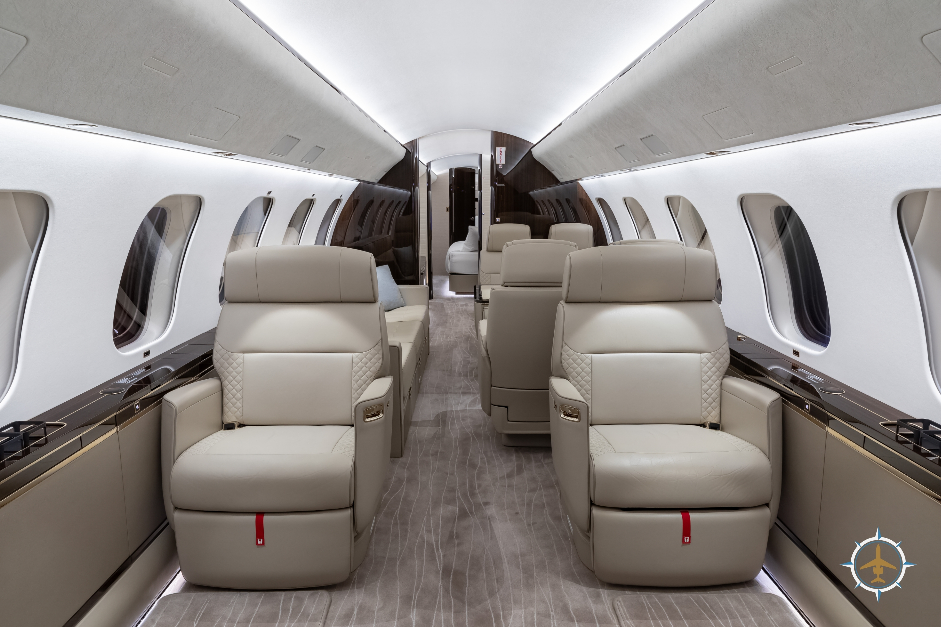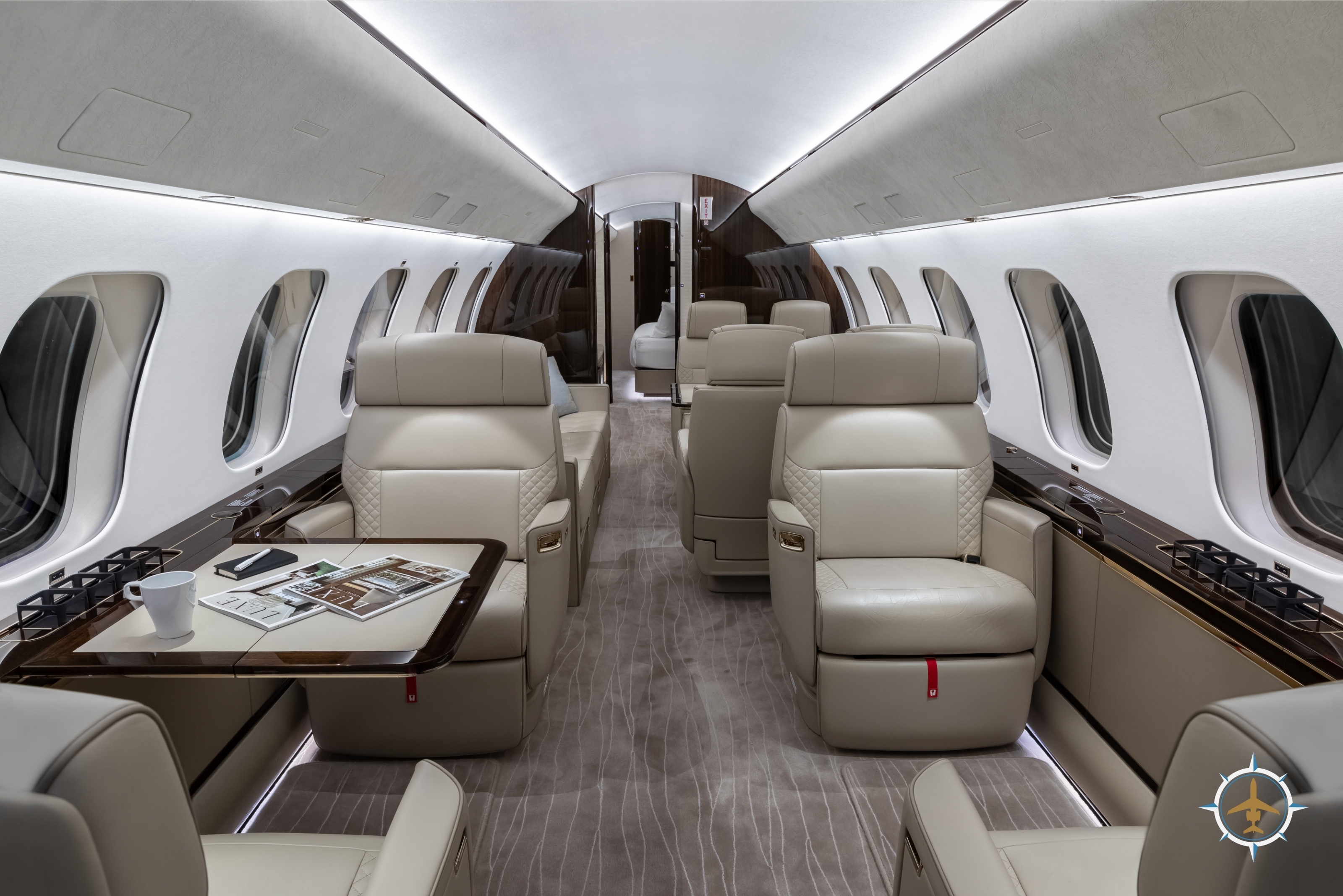 The 14-passenger executive interior is configured as follows: