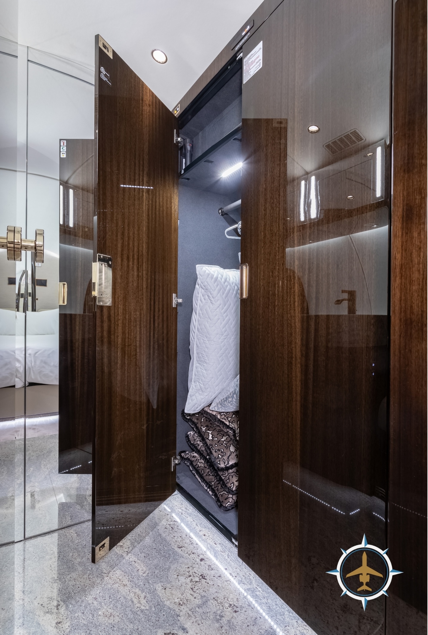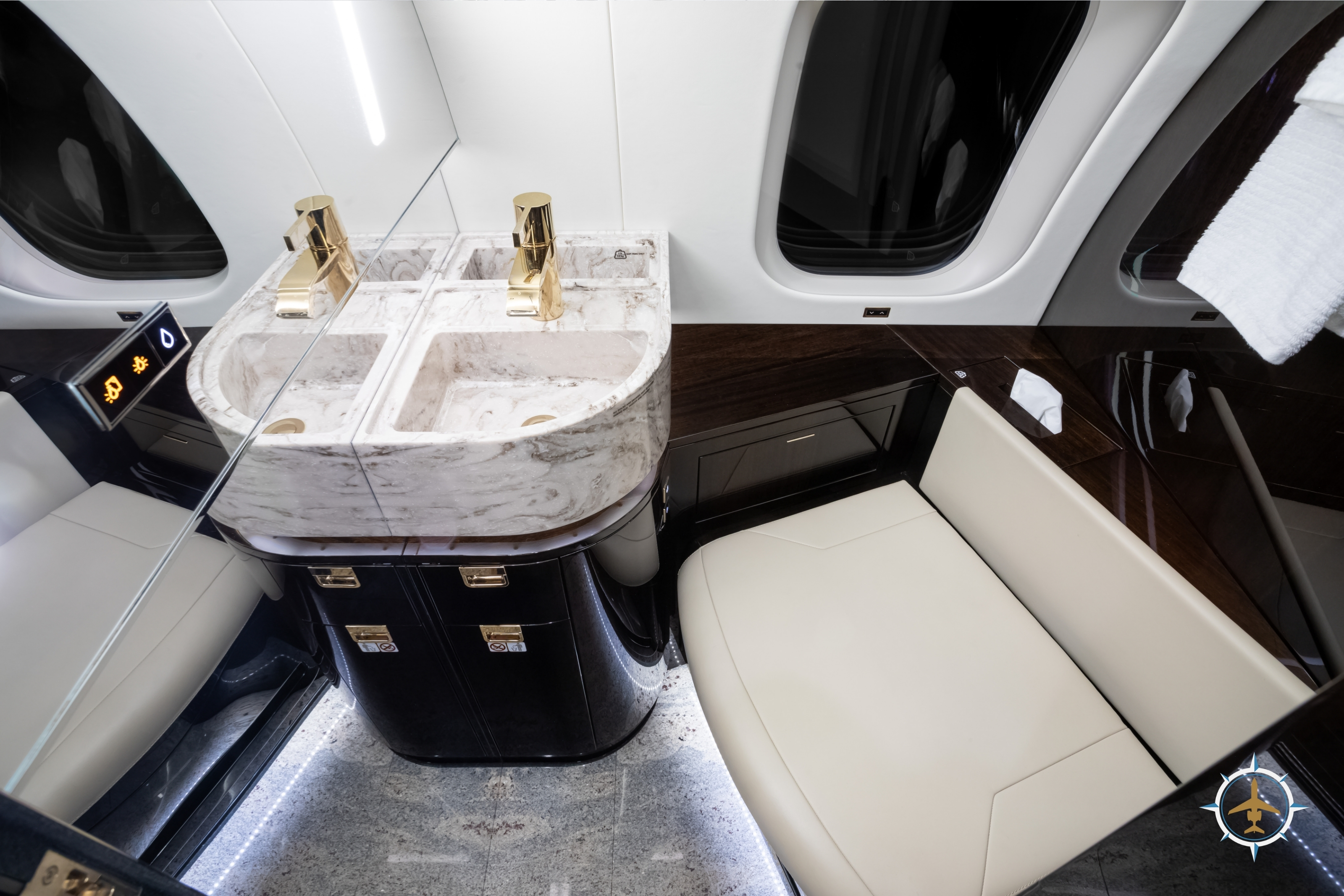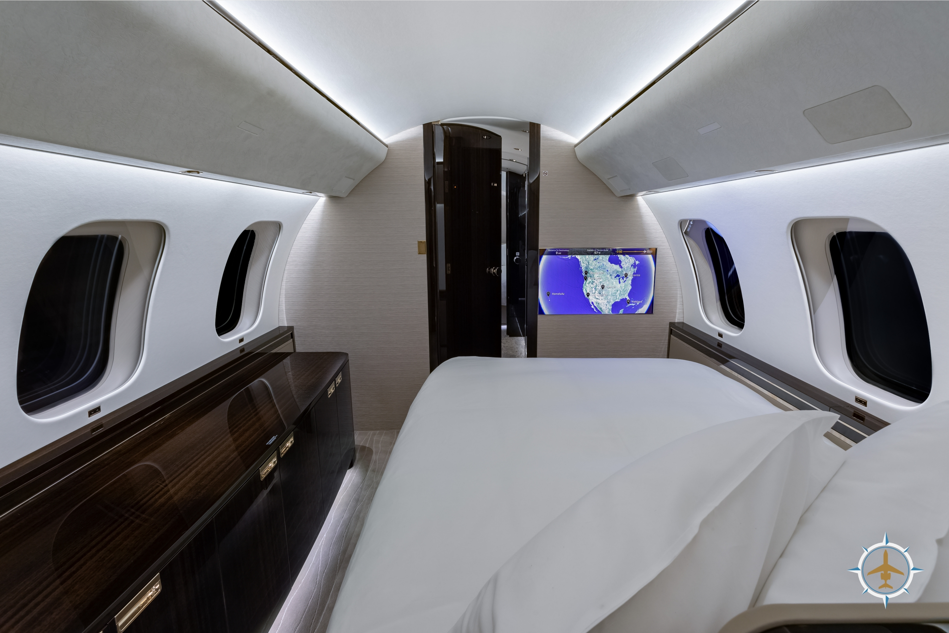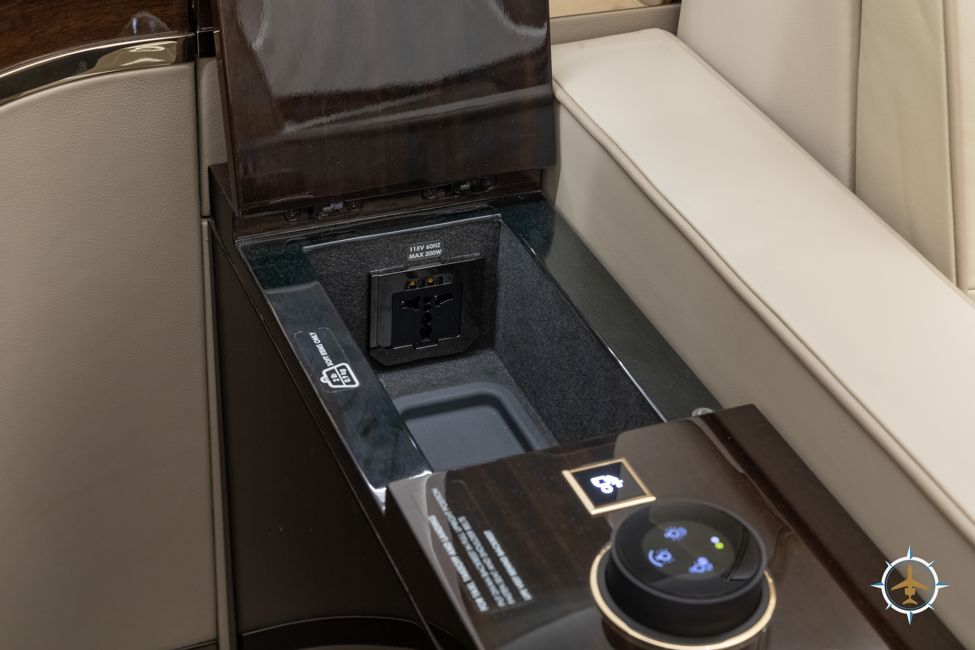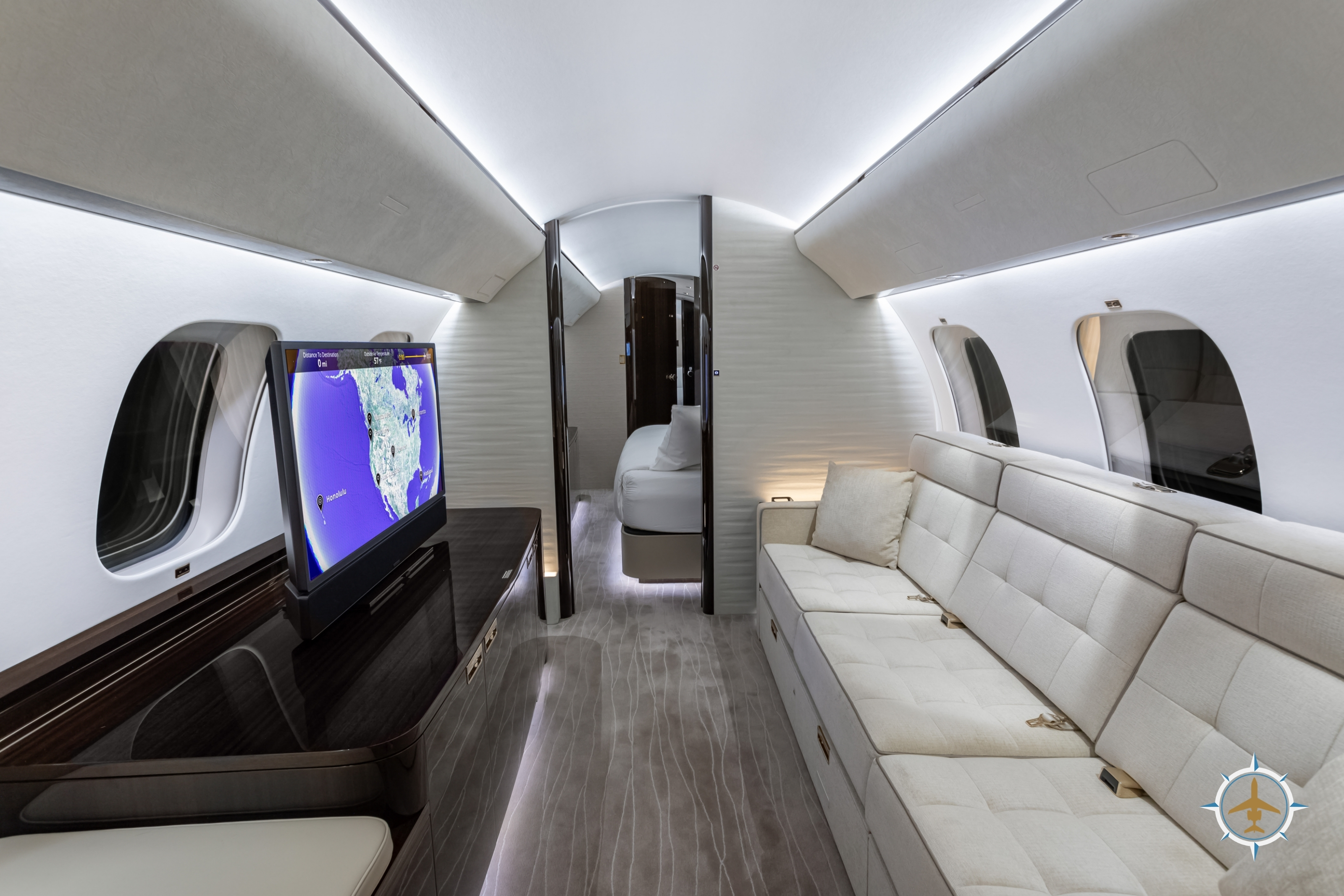 The 14-passenger executive interior is configured as follows:
